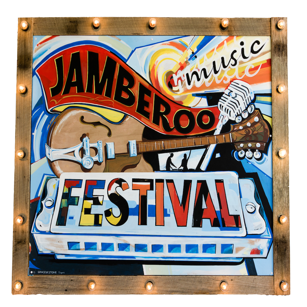 We need a music festival design that is bright, colourful & vibrant. Space for 28-32 band names & info - Jamberoo Music Festival, 20th July, Tickets & Info jamberoomusicfestival.com, Attached are other poster for inspo. Family festival that has Blues, Roots, Folk, Reggae, Rock, Country please see design encapsulates that. Original logo colours would be desirable.