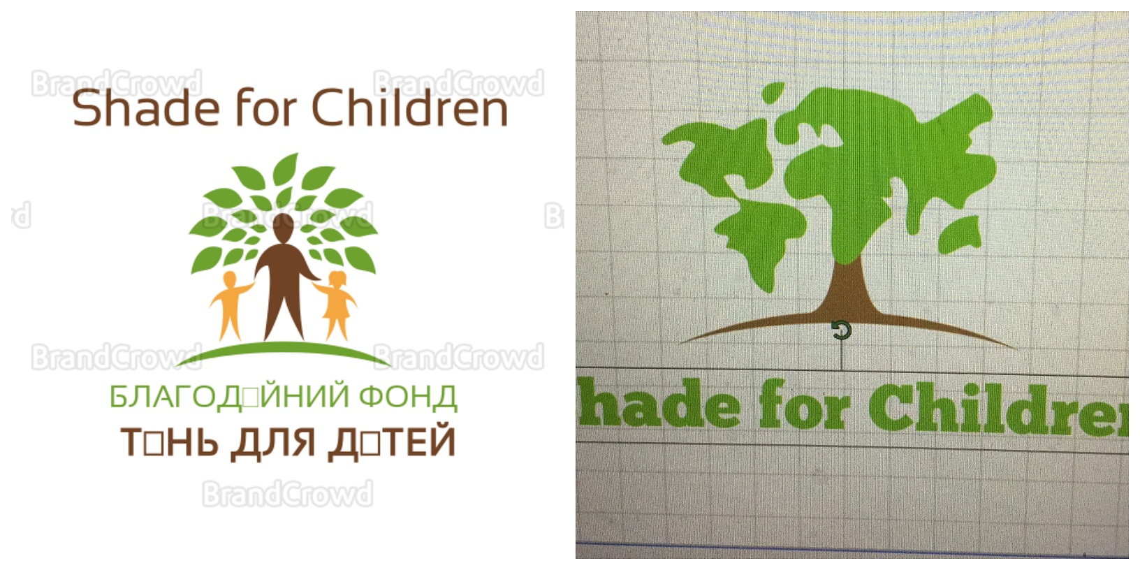 The Ukrainian word for "Shade" translates to something more akin to "Shadow" so our Ukrainian name "Тінь для Дітей" doesn't really convey our idea of being "shade/shelter/protection" for children. So I think I want a logo of a shade tree with children underneath or some other way to convey our meaning. When a Ukrainian sees the Ukrainian title they think "shadow for kids" and it really doesn't make sense. When I explain the concept to them, then they get it. I've seen a few interesting stock designs, including one where the "canopy" of the tree is in the shape of Ukraine but I'm still not satisfied. A local artist friend created a painting that I'm using as the banner for my website- it's beautiful but it's too busy for a shirt pocket design (www.shadeforchildren.net). The design will be used over the pocket of shirts and probably on a business card as well with social media.