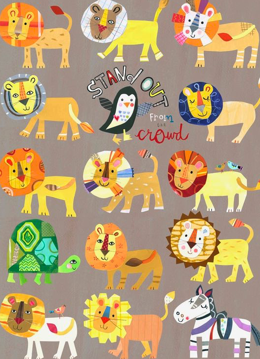 - use of an art style for example printmaking or collage (see images attached)