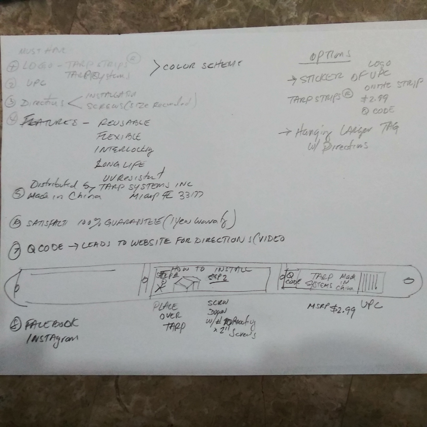 We are looking to have the label designed and to be included in the item with Tarp Strips name, upc code, our logo(Tarp Systems inc), patent # info, hurricane flag image graphics, roof repair graphic (provided), QR code and other chosen information for the label so my manufacturer can install at production.
