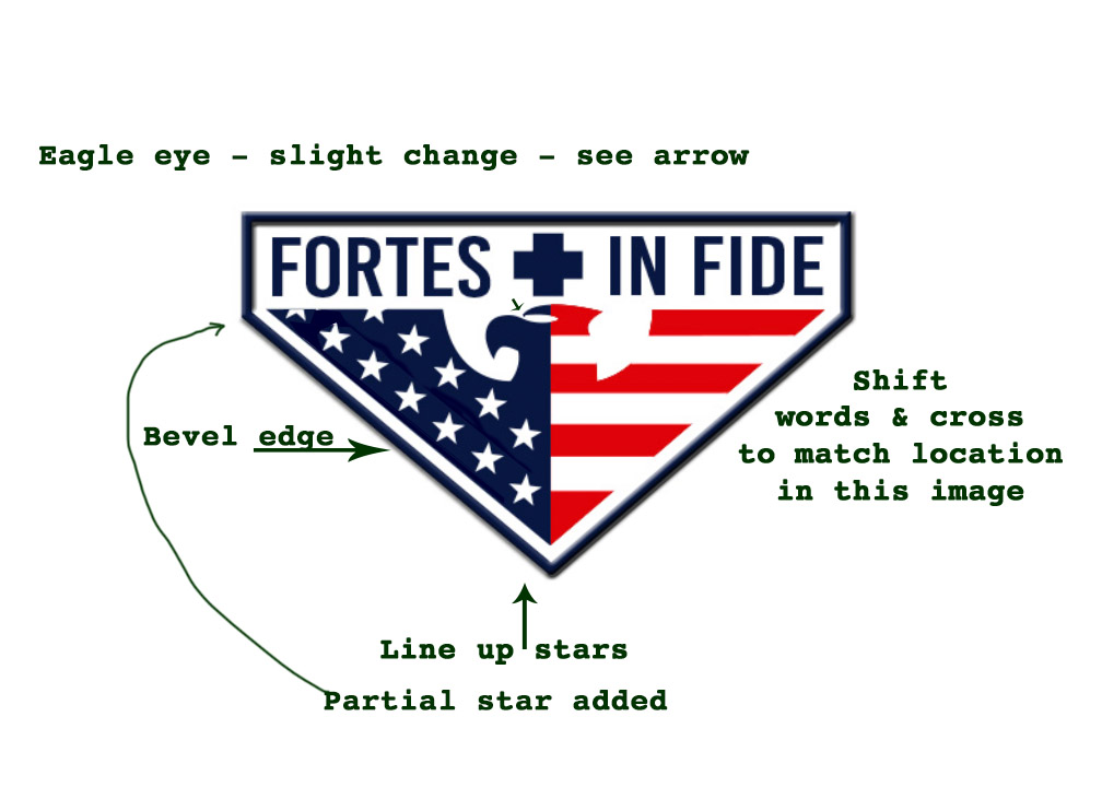 I would like the attached logo professionally recreated with some USA color and style (think military). I do NOT want a different concept. I would like the cross with the eagle and stars & stripes below. You're welcome to make some artistic changes but please do not offer entirely different image designs. Thank you.