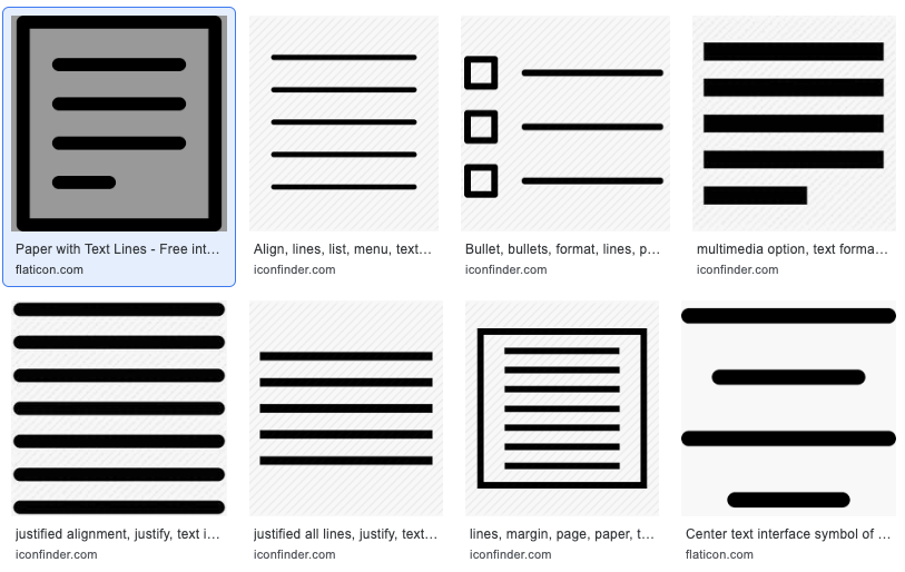 - I prefer to have a some shape / icon with the logo and not just text. Also, I don't want the icon to be with old caligraphy symbols (feather pen, old pen tip) but with something that's similar to text lines, a symbol which resembles lines of text / paragraph. Please see attached image.