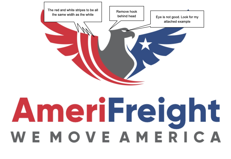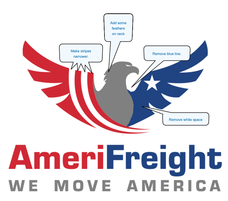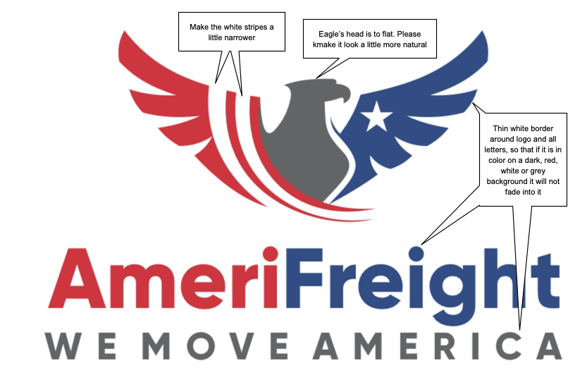 I need a review for our logo and modernize it. I need the logo to show more the name of the company "AmeriFreight" than now. the words "WE MOVE AMERICA must also be part of the logo