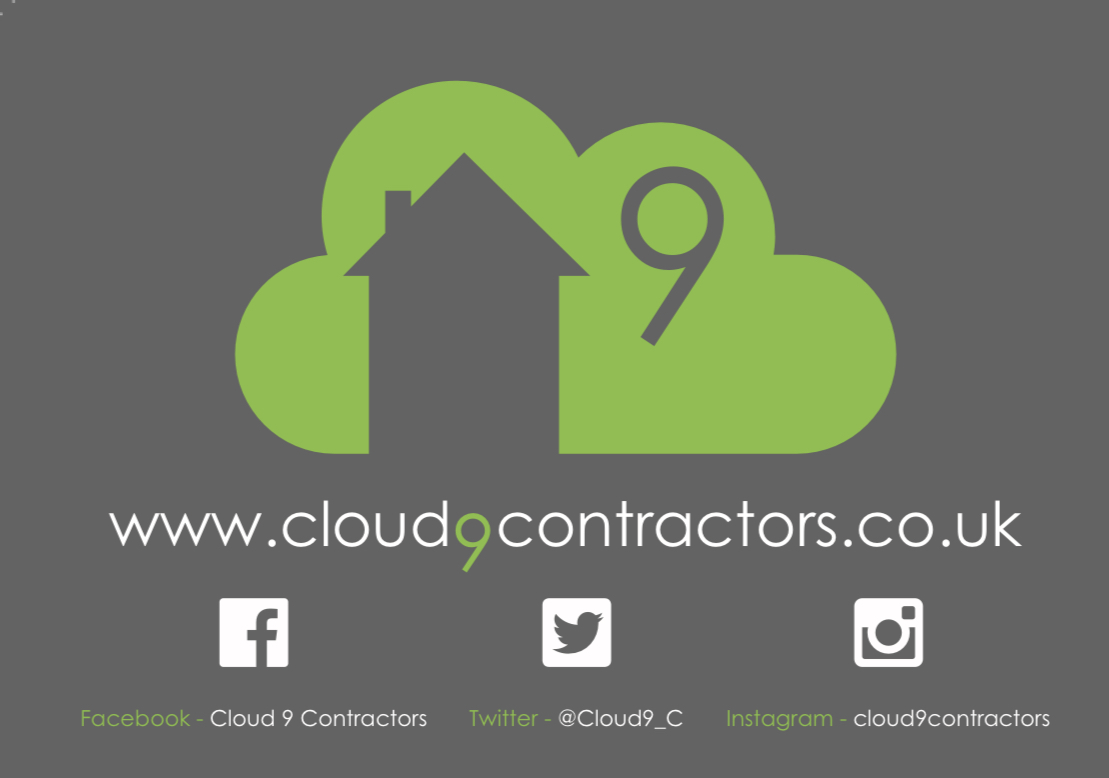 May be an idea to keep the text of the logos the sam colours as our original logos - So the E would be and then C9 would be bright green/lime. Search our Facebook page for colour match - Cloud 9 Contractors.
