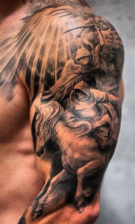 I would like the tattoo in black and grey representing of the star sign animals of my children and wife. It will be upper shoulder front and rear (not reaching up to neck) and going down to my right elbow. It needs to somehow mix a shark for my wife another type of fish (open to ideas.... but I like the idea of a sailfish ) for my middle son who are both Pisces, a bull for my eldest son, and a scorpion for my daughter (youngest)