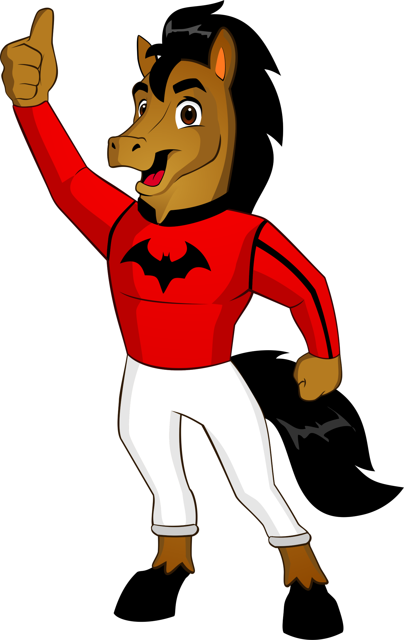 - We have our own horse racing colours (silks) - They are red/black with the Bat symbol in the middle. I will attach photos below. If they could be incorporated into the character if that is the way you choose to go - that would be excellent.