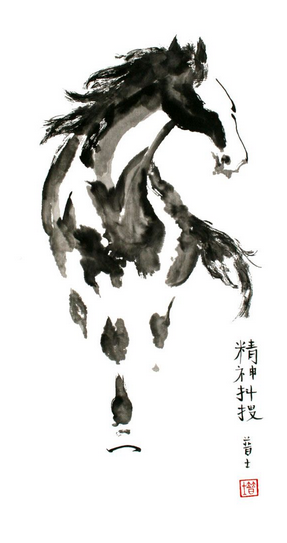 - I like the geometric dog image - would have to be a golden retriever ( with horse maybe running near it and dog running) I also love the clean lines of the Japanese art style horse image. These are NOT my images. I do not own them.