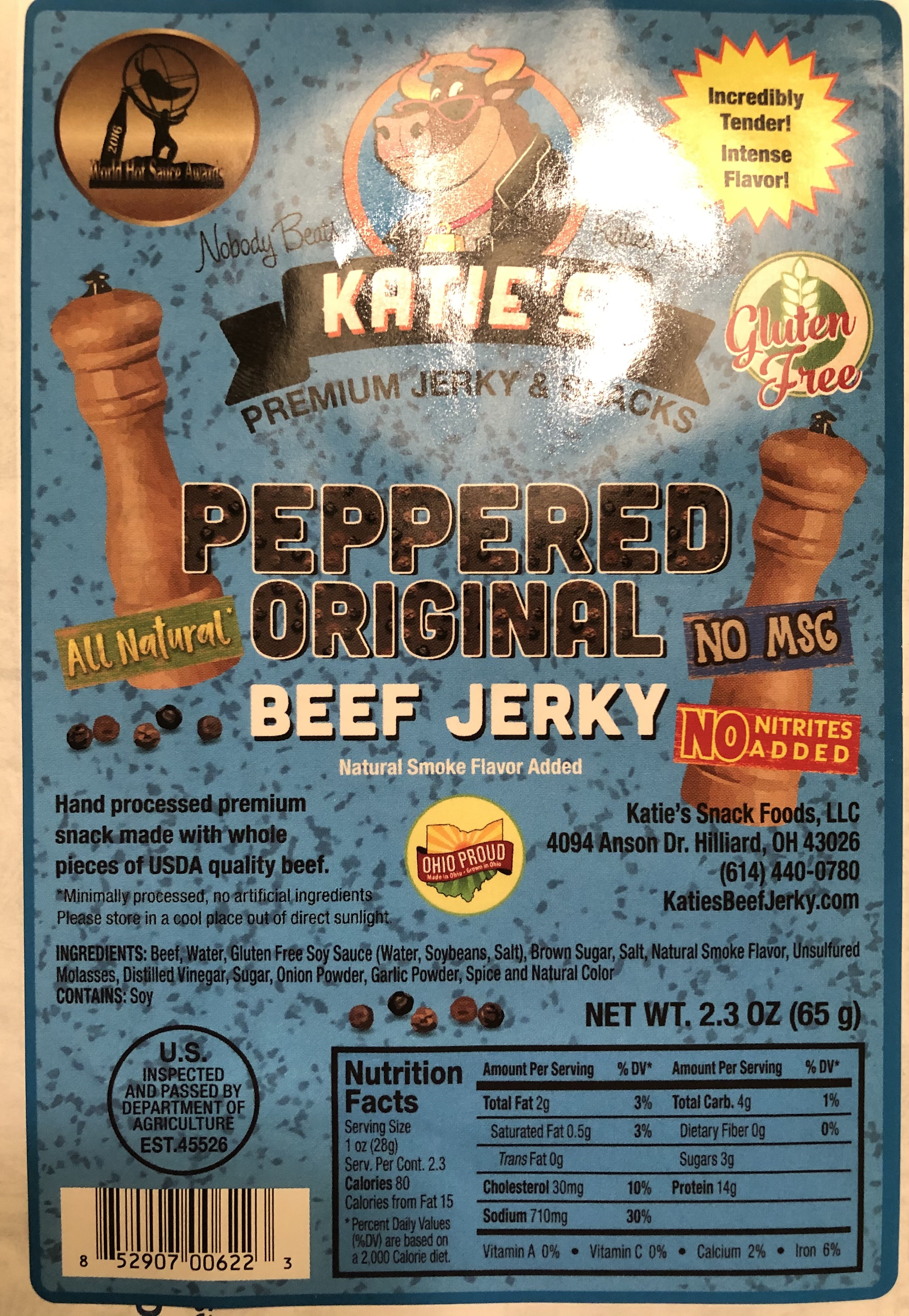 - Logo. Write up about our charity. Shine or metallic appearance of logo will make it stand out. Dont want to lose the logo in the background colors. On the front- product highlights. 14g of Protein, 2 g of fat, 80 Calories, NO MSG, No Nitrates, ALL Natural, Gluten Free