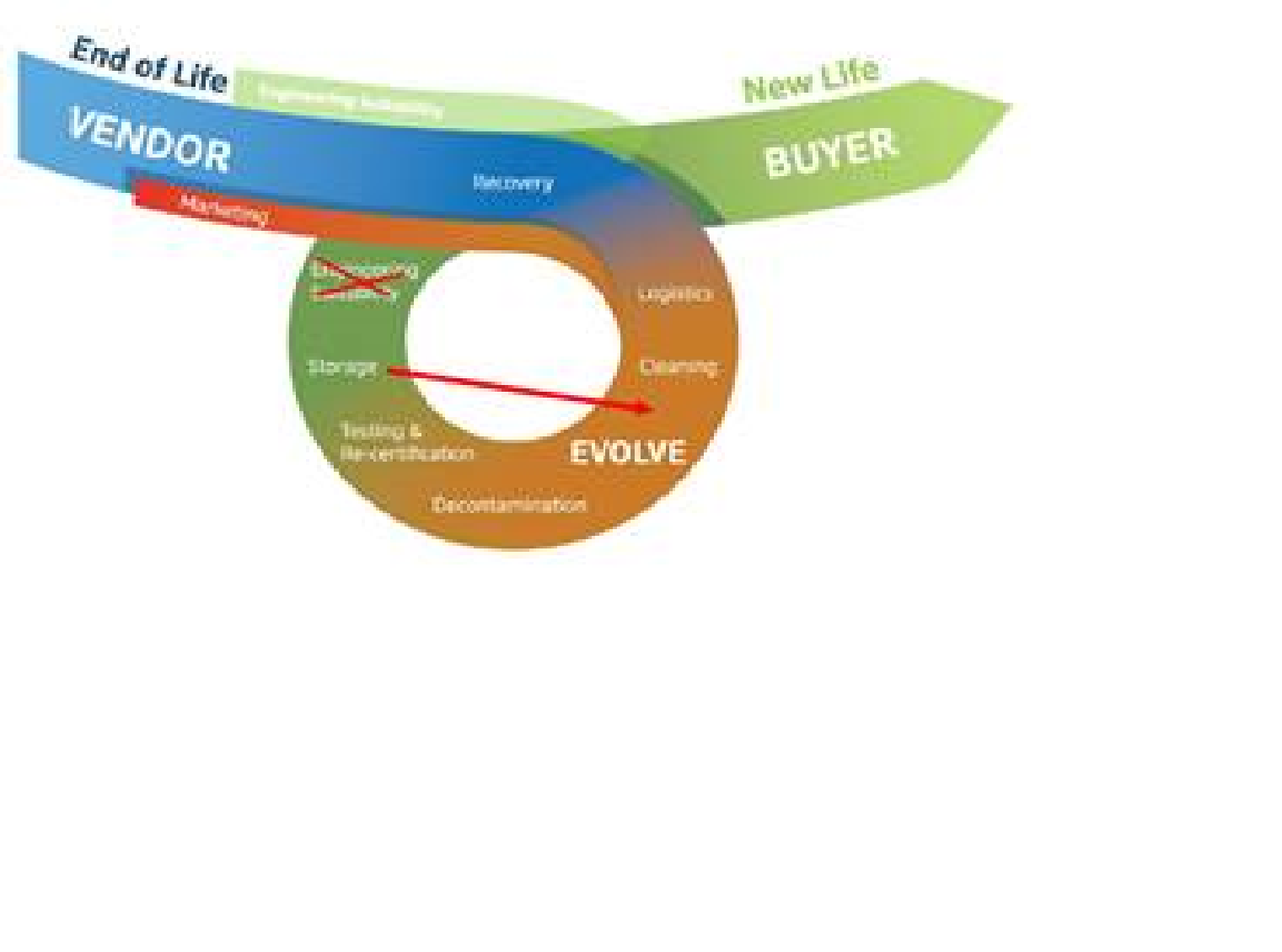 Smaller text for the functions; marketing, recovery, logistics, cleaning, decontamination, testing & re-certification, storage, engineering suitability