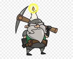 - use of tool(s) like rock picks, mine headframe, ore cart, mine entrance, rock pile, helmet lantern,