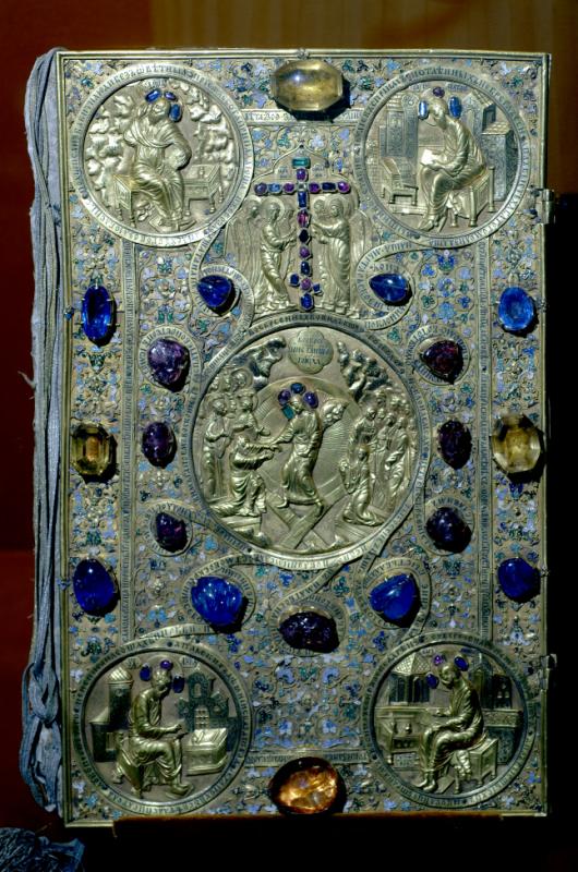 The book needs to have a big thick old bible kind of look with gems like its. Nprestigious old ook