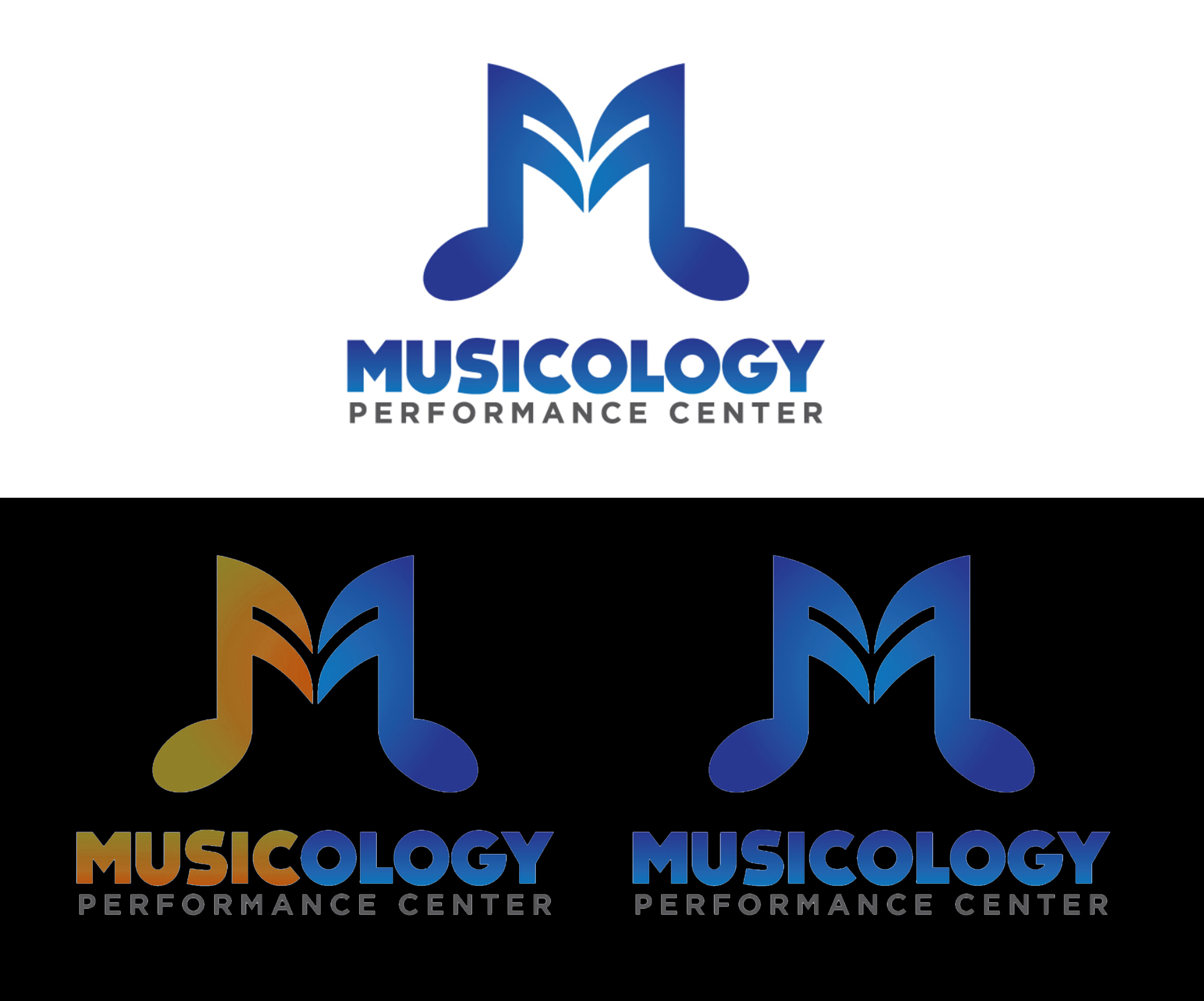 -We want the Musicology word Bold and much bigger than performance center. Performance center should be smaller and fit underneath.