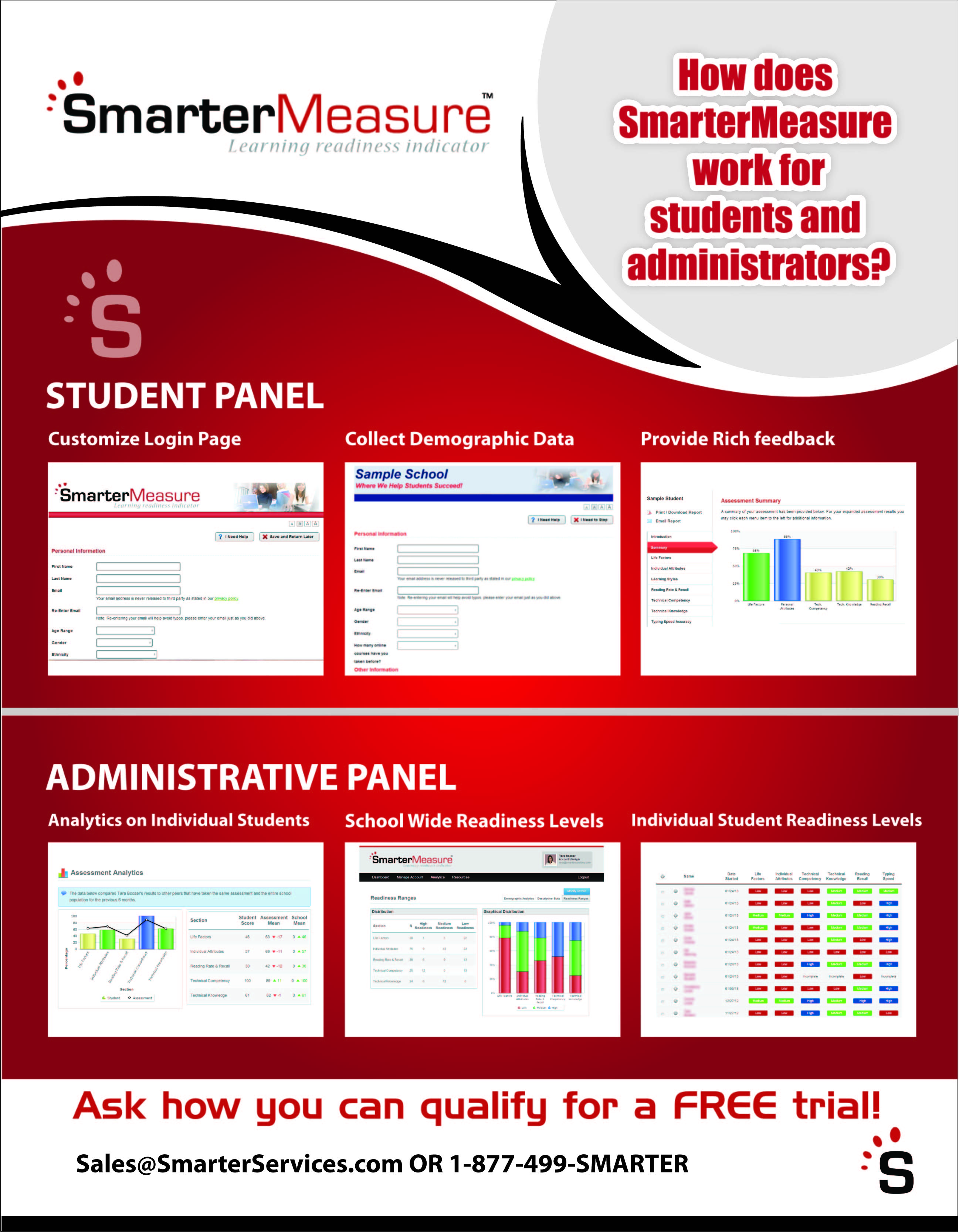 31'W x 81'H - design should be clean and pop. We work with higher ed and k12 (high school) industry so our audience is students, administrators, and such. One of the attached graphics has the concept of our 3 banner stands. 1 - SmarterMeasure 2 - Graphic (what we like - multiracial, neatly dressed, differ. ages, world behind, swoosh at the bottom which mimics our look on flyers - see attachment). what we don't like - green color which doesn't go w/ our look, words on the image. Our 2 products are used to help schools proctor exams and measure student learner readiness. I'd like to see 2 variations. One colorful with red and purple popping somehow coordinating with our literature w/o being matchy matchy and the other option a bit more muted or subdued in color. We want to look professional and not like a preschool using bright colors but visually appealing nonetheless.