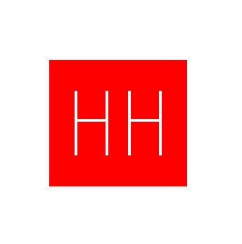 2. White "H" or "HH" letters inside square.