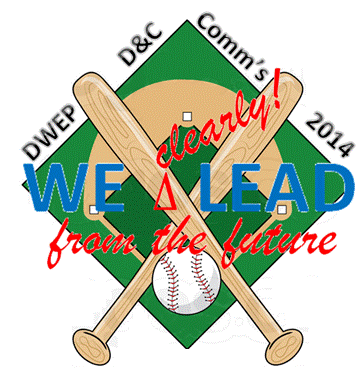 - Must have the words "DWEP D&C Comm's 2014" and also "We clearly! LEAD from the future" on the logo. The background of the logo should be a baseball theme. Would like several colors including green to represent the baseball field, brown for the dirt, white bases, with red and blue lettering.