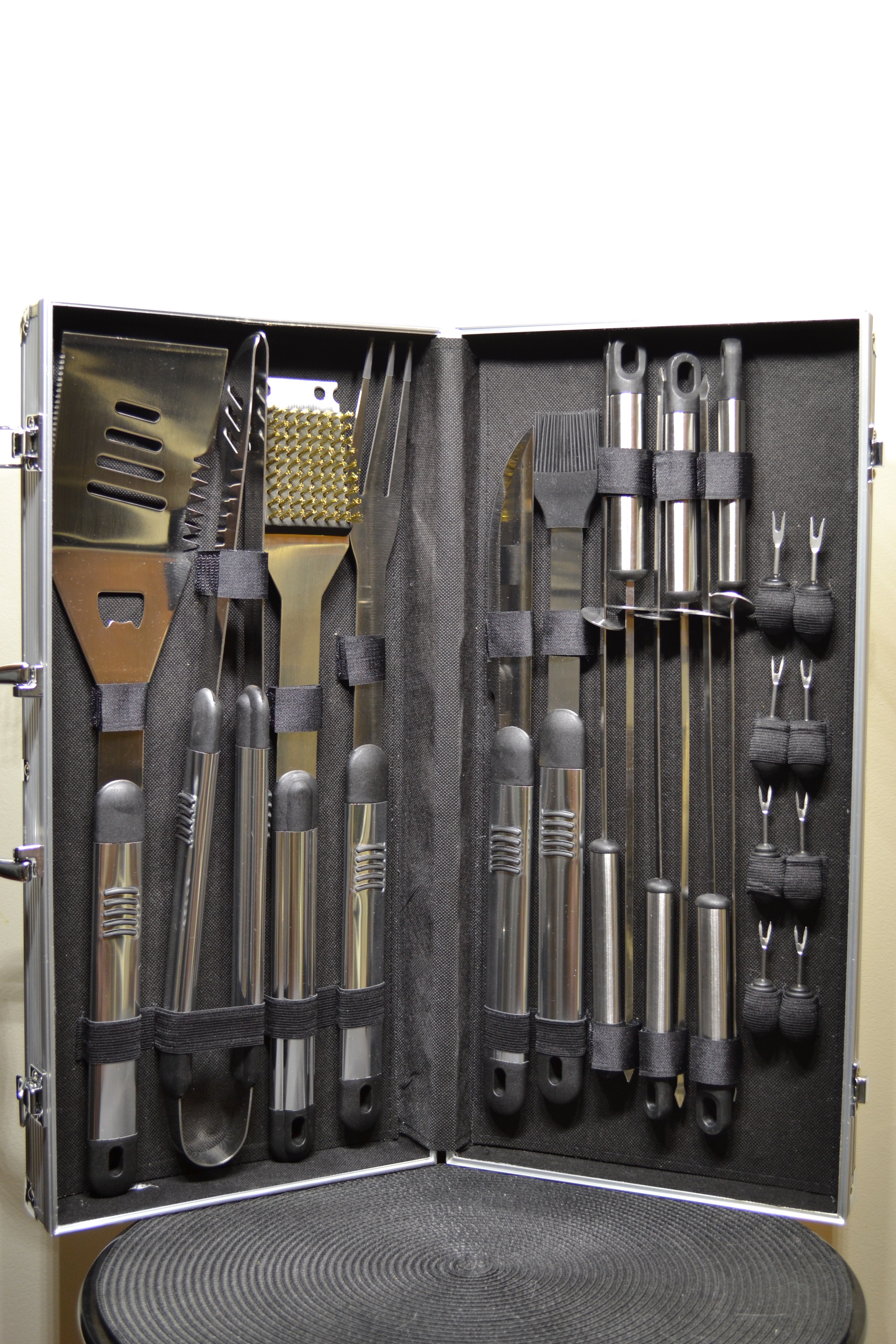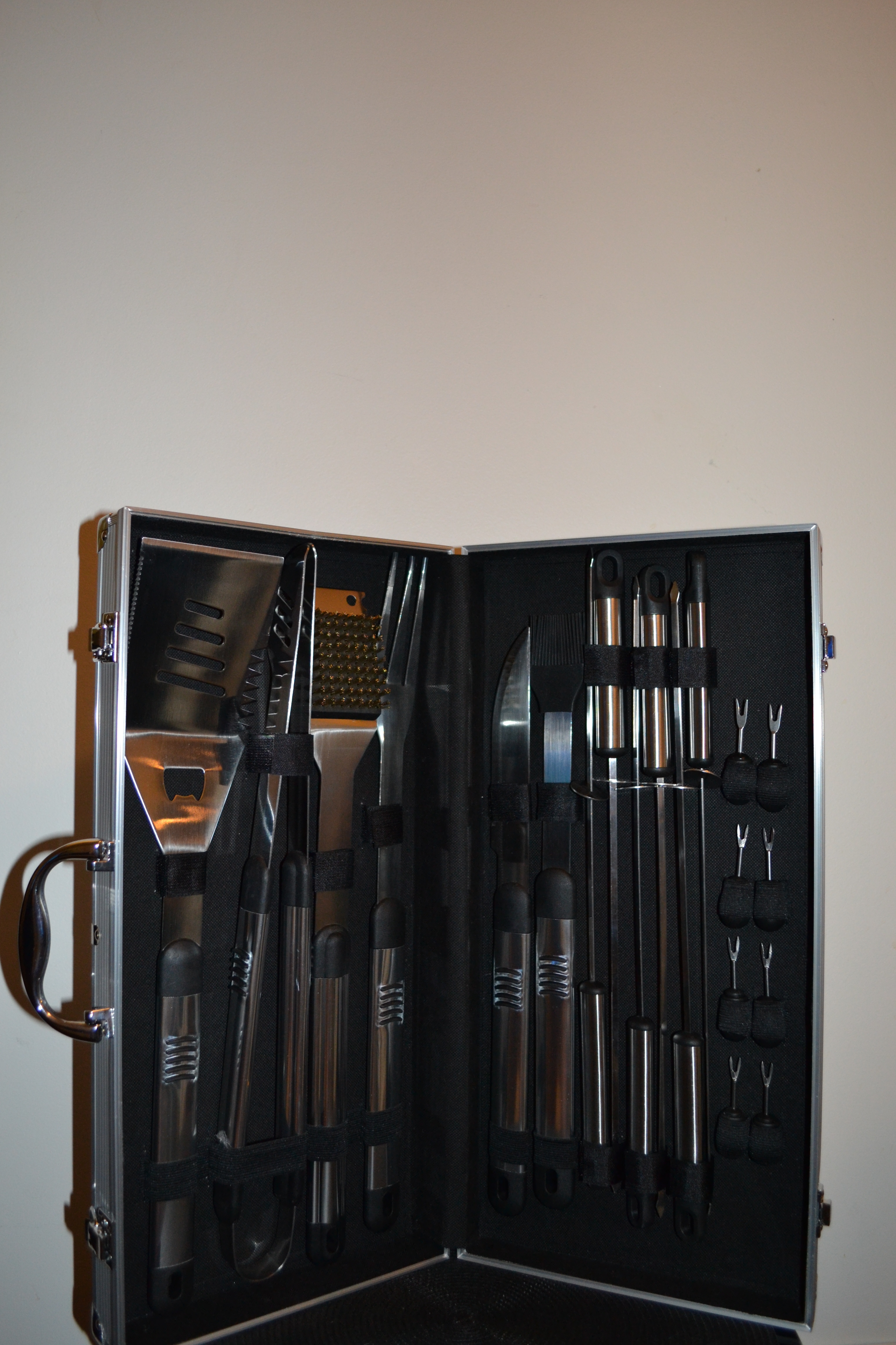 *Mention that is 20 pieces, high grade, stainless steel barbecue/grilling tool set, which includes the following: