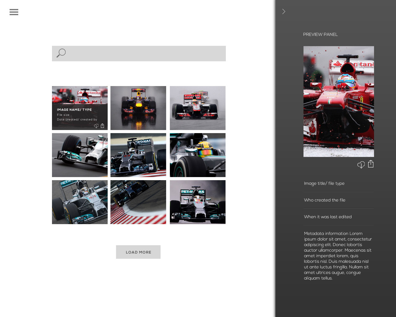 I'd like a minimalist design, colours for the interface at present are only white and light and dark carbon (since the interface shows thumbnail views of the imagery shared i've decided to keep the colours to a minimum)
