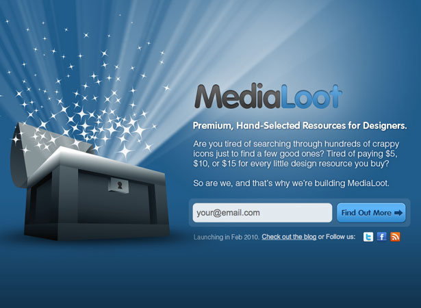 The MediaLoot example above includes all the critical design elements and has a nice look.