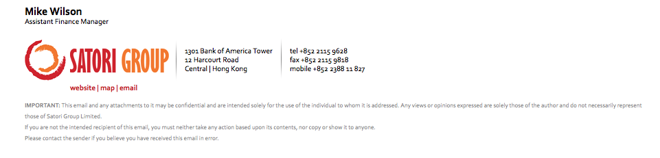 The details to be included in the email footer are: