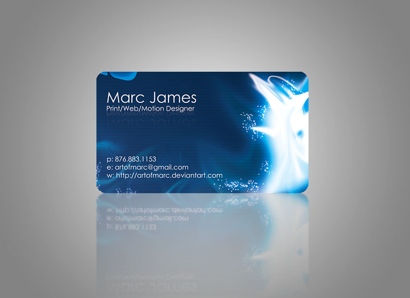 Try to give it a backside that has a wow factor to it. I've changed the color spectrum to blue, black, purple, and pink for the front side. Think of it as 90% blue and black, 7% purple, 3 % pink when it comes to thinking of ratios of how much of each color i'd like to see on the card. Backside you can use any of those 4 colors as much as you'd like to give it memorable.