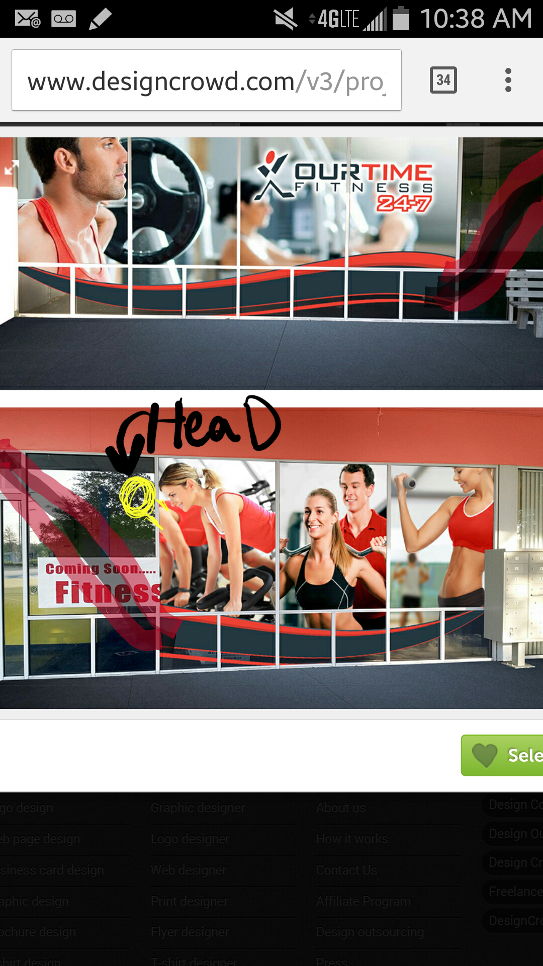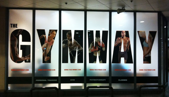 We want to portray "Results" when people walk up. Our colors are shown on our Logo (attached). Red, gray, black. We are open to any ideas and concepts as far as how the layout is shown, example: Each window a different image, or one large image on each side shown through all windows. I have also attached some examples of other stores that look appealing. Our Services include 24 hour access, personal training, tanning, and group exercise. Each window is approximately 60 inches wide and 75 inches tall.